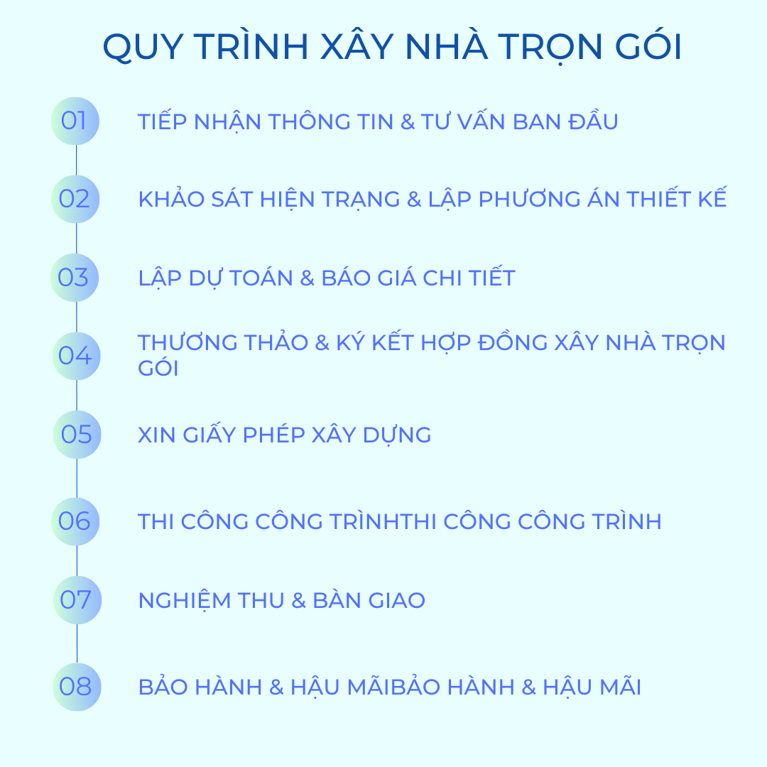Để đảm bảo sự suôn sẻ và minh bạch, quy trình xây nhà trọn gói của Xây Dựng Đại Lợi được thực hiện theo các bước rõ ràng, khoa học: